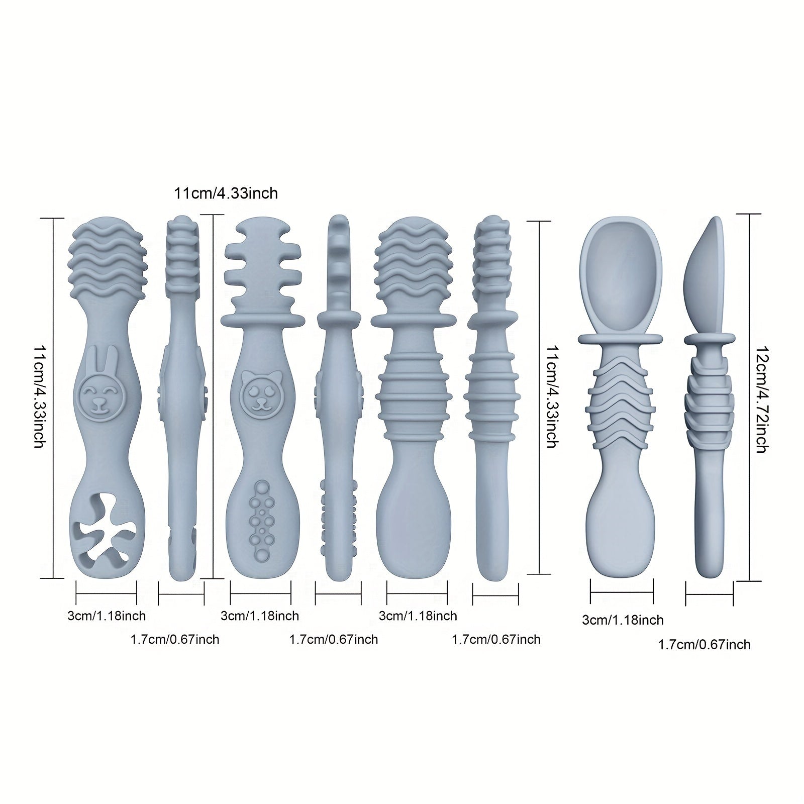 Make mealtime easier with this gentle, baby-friendly silicone cutlery set! Designed for little hands and delicate gums, this 4-piece spoon and fork set helps babies transition to self-feeding with confidence.