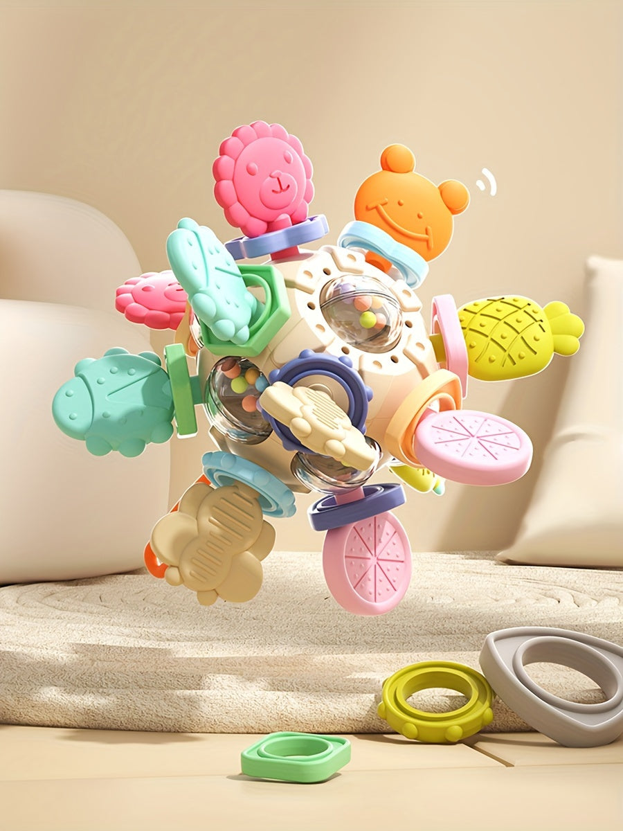 Make teething and playtime more fun with this vibrant silicone hand-grabbing ball! Designed for little hands, this soft, bite-friendly teether soothes sore gums while encouraging sensory exploration and fine motor skill development.